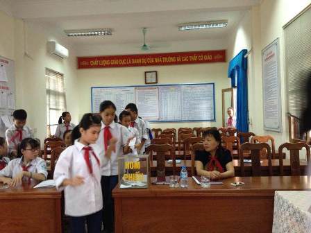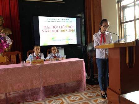 Sau Nghi thức chào cờ trang nghiêm, Đoàn Chủ Tịch cùng thư kí Đại Hội lên làm việc. Bạn Nguyễn Thị Thùy Linh - Liên Đội trưởng đọc báo cáo tổng kết của Liên Đội năm học 2014 – 2015. Đại hội hết sức phấn khởi với những thành tích đã đạt được trong năm học qua.