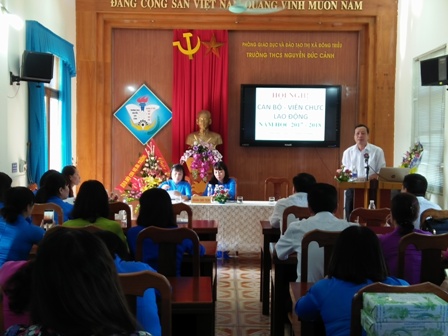 Hội nghị Cán bộ, Viên chức lao động Trường THCS Nguyễn Đức Cảnh đã thành công tốt đẹp. Qua Hội nghị, mỗi Cán bộ giáo viên, nhân viên nhà trường càng hiểu rõ hơn về trách nhiệm nặng nề nhưng vô cùng vẻ vang của mình trong việc thực hiện Nghị quyết năm học 2017- 2018. Đó là tiếp nối truyền thống của nhà trường đã đạt được trong những năm qua, cùng sự quan tâm chỉ đạo sát sao của Lãnh đạo Phòng giáo dục & Đào tạo thị xã Đông Triều, UBND phường Mạo Khê và sự tin tưởng, ủng hộ của cha mẹ học sinh, thầy và trò nhà trường sẽ nêu cao tinh thần trách nhiệm, quyết tâm, phấn đấu để hoàn thành xuất sắc những nhiệm vụ giáo dục đã đề ra.