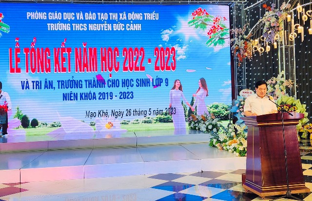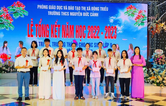 Sáng ngày 26 tháng 5 năm 2023, trường THCS Nguyễn Đức Cảnh đã long trọng tổ chức Lễ tổng kết năm học 2022 - 2023 và Lễ ra trường cho học sinh khối lớp 9 niên khóa 2019 - 2023.Về dự buổi lễ tổng kết với thầy và trò nhà trường có đồng chí Vũ Đức Quynh phó chủ tịch UBND phường Mạo Khê, ông Vũ Ngọc Sơn trưởng Ban đại diện Hội cha mẹ học sinh nhà trường, đại biểu lãnh đạo các khu hành chính, các bậc phụ huynh học sinh, các thầy, cô giáo cùng hơn 700 em học sinh trong toàn trường.